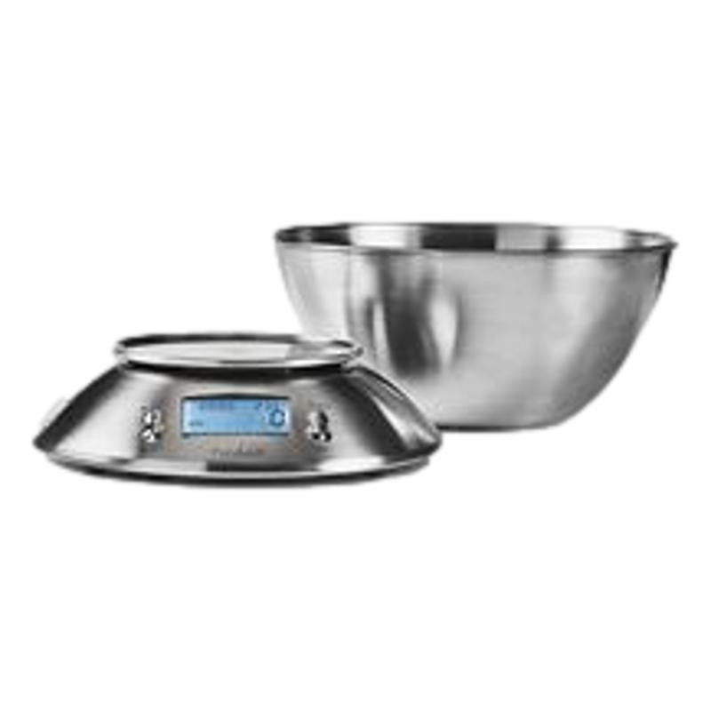 Balance de cuisine numérique avec thermomètre et réveil intégrés pour peser les ingrédients jusqu'à cinq kilogrammes. Fournie avec un bol amovible en acier inoxydable facile à nettoyer. Caractéristiques : Bol en acier inoxydable amovible, facile à nettoyer Timer d'alarme Capteur de température, °C/°F Différentes unités de mesure, kg, livre ou once Fonctionnalité TARE Fonctionne avec 2 piles AAA (3V) non-incluses