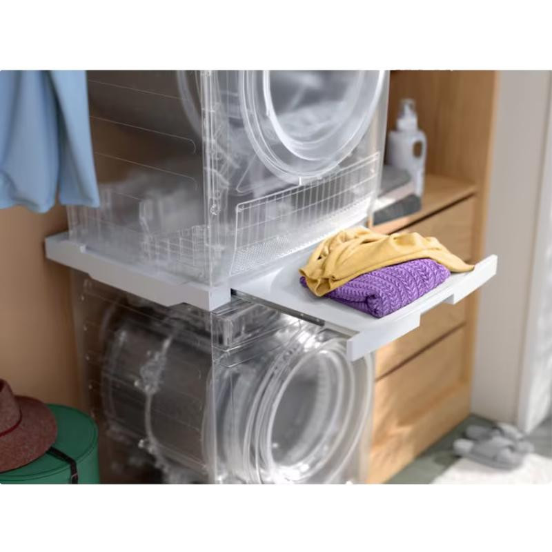 Pour installation du sèche-linge au-dessus de la machine à laver. L'étagère coulissante intégrée permet de charger et de décharger votre machine sans effort. Convient à tous les chargeurs frontaux et sèche-linge Electrolux d'une profondeur de 52 à 67 cm. La bande de sécurité permet d'empiler les machines en toute sécurité Référence produit : E1WYHSK1