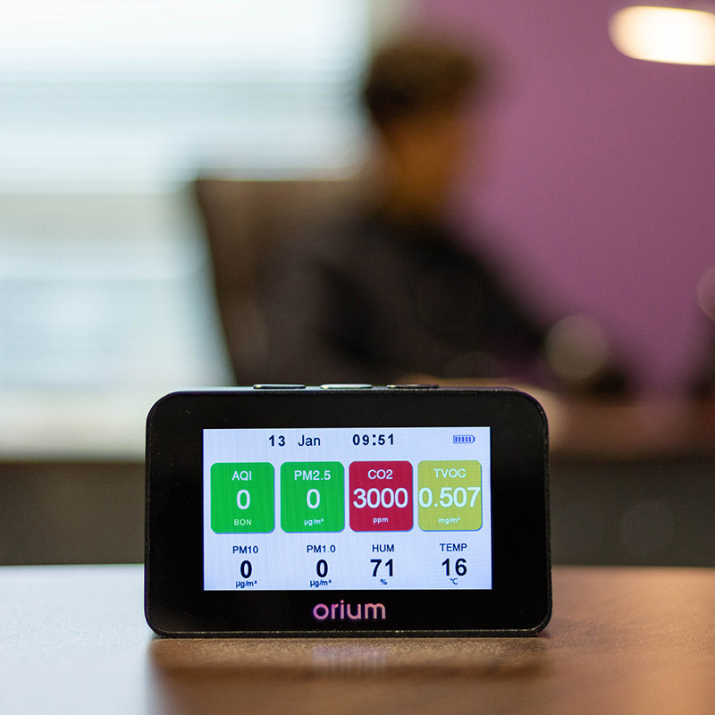 polluants de la QAI : CO2, COV, PM1.0, PM2.5, PM10,