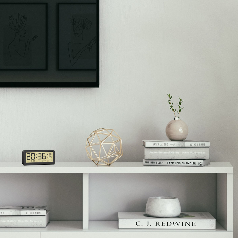 Reveil digital black affichage thermometre/humidite Evoom EV312668 Photo non contractuelle