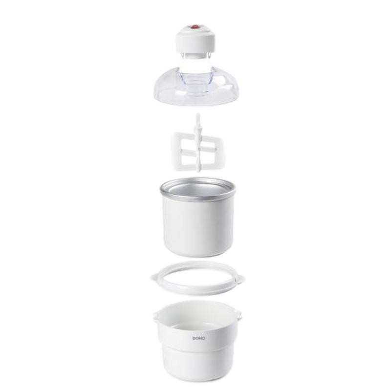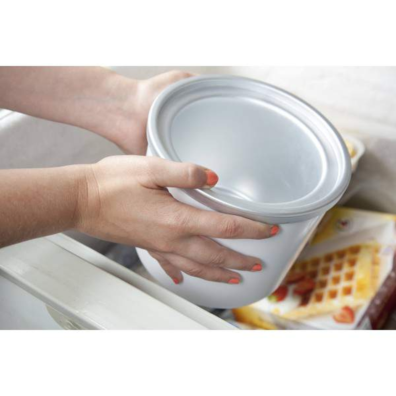 Sorbetière compacte pour la réalisation de 1 litre de glace - Bol réfrigérant amovible - Couvercle transparent avec ouverture de remplissage - Une seule pression sur le bouton - Rapidement démontable pour un nettoyage facile - Recettes incluses - Protection contre la surchauffe