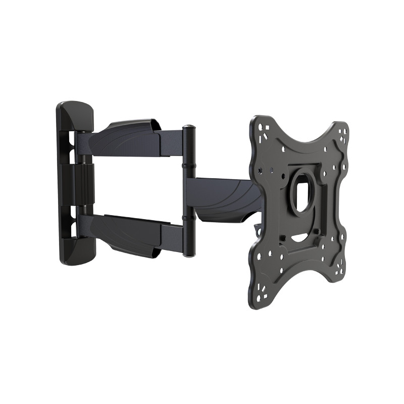 Support TV mural pour écran de 23 à 42" 3 articulations VESA 100x100-100x150-150x100-200x100-200x200 Intègre passes câbles Ajustement :+/-5° Inclinaison :+5/8° Orientation :180/180/180° Couleur noir Charge MAX :35 Kg Distance murale :52-506 mm Dimension blister en mm (LxlxH) : 390x320x60